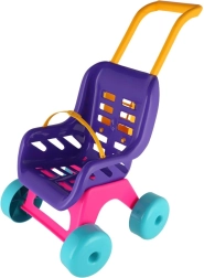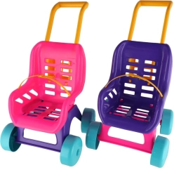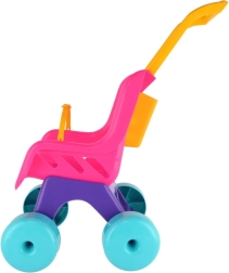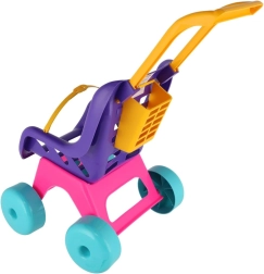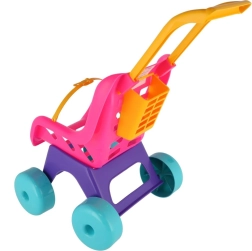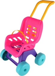 Leichter Puppenwagen aus Kunststoff mit hoher Schiebestange und stabilen Rädern – ideal zum Spielen zu Hause und draußen. Bietet einen Sicherheitsgurt für die Puppe, ein praktisches Körbchen unter der Schiebestange und einfache Handhabung dank geringem Gewicht und robuster Konstruktion.