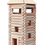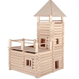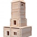 Der Vario XL Bausatz besteht aus hochwertigem, massivem Buchenholz mit einem Durchmesser von 15 mm. Dieser Bausatz bietet dank seiner 184 Teile unendliche Kreativmöglichkeiten. Enthalten ist alles Nötige zum Bau verschiedener Modelle, einschließlich Holzstäben mit einem Querschnitt von 9x9 mm, Teilen für Giebel und Dächer, Kartonausstanzungen für Fenster und Türen sowie Papierbedruckungen für präzise Details.
