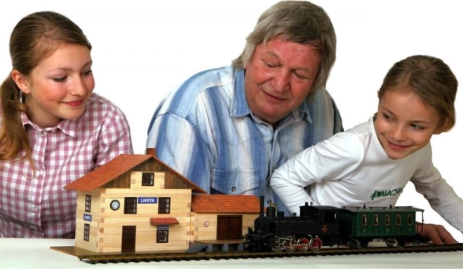 Tauchen Sie ein in die Welt des Modellbaus mit einem Bausatz, der alles Notwendige für die Erstellung eines detaillierten Bahnhofs im Maßstab 1:45 enthält. Dank der Holzleisten mit einem Querschnitt von 9x9 mm, den Kartonausschnitten für Fenster und Türen sowie weiteren Komponenten gestalten Sie authentische Landschaftselemente.