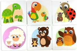 Die Kinder suchen die passenden Paare – ein kleines und ein großes Tier – und trainieren dabei Logik sowie das Erkennen von Formen und Farben.