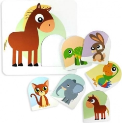 Dieses einfache Lernspiel ist ideal für die ersten Spielerfahrungen. Kinder ordnen kleine und große Tiere zu, erkunden Form und richtige Ausrichtung und setzen die herausnehmbaren Teile in die entsprechenden Öffnungen der Tafeln. Jedes richtig gefundene Paar stärkt das Selbstvertrauen und die Entdeckerfreude.