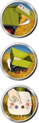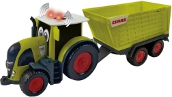 Der Traktor Claas mit Anhänger bietet kleinen Kindern ein authentisches Bauernhoferlebnis. Das Spielzeug besteht aus grünem Kunststoff mit schwarzen und roten Elementen und ist etwa 28 cm lang. Dank der süßen Augen, die den Traktor schmücken, zaubert er Kindern Freude und ein Lächeln ins Gesicht. Er ist für Kinder ab 12 Monaten geeignet und im Hinblick auf Kindersicherheit mit abgerundeten Ecken und Kanten gestaltet.