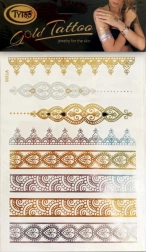 Entdecken Sie den Zauber der goldenen temporären Armbänder TyToo, die Ihr Handgelenk, Ihren Arm oder Knöchel schmücken. Diese Tattoos sind ein einzigartiges Modeaccessoire, das Ihrem Look einen Hauch von Luxus verleiht.