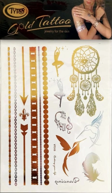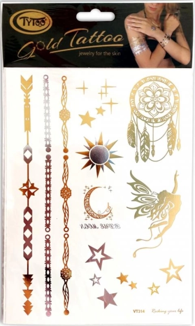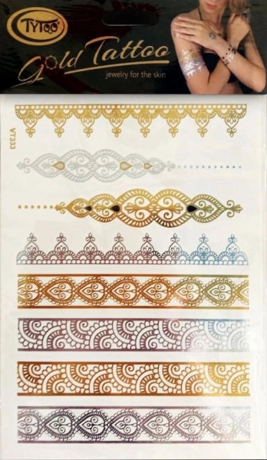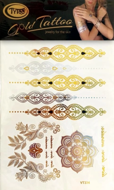 Goldene temporäre Armbänder TyToo sind ein echtes Schmuckstück für Ihre Haut. Sie sind einfach und schnell anzuwenden, geeignet für verschiedene Körperteile.