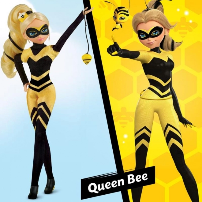 Die Puppe Miraculous Queen Bee ist in einem strahlenden gelb-schwarzen Kostüm gekleidet und trägt eine Maske, die ihren Superhelden-Stil wirklich hervorhebt.