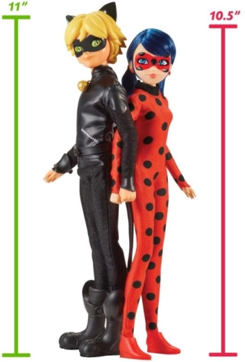 Tauchen Sie ein in die zauberhafte Welt von Miraculous, in der das harmonische Superhelden-Duo Ladybug und Cat Noir über die Sicherheit der Menschheit wacht. Ihre Aufgabe ist es, Paris vor dem Schurken Hawk Moth zu schützen und die Stadt vor Verbrechen zu bewahren. Sowohl Ladybug als auch Cat Noir besitzen ein Miraculous, das ihnen enorme Stärke, Mut und Schnelligkeit verleiht. Set mit zwei Puppen – Ladybug und Cat Noir – in ihren Kostümen. Die beweglichen Puppen sind 27 cm groß; die Verpackung enthält das Superheldenkostüm und Zubehör.