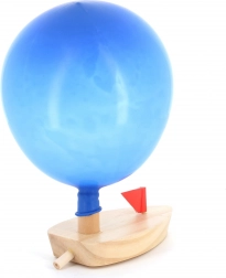 Pusten Sie den Ballon auf und beobachten Sie, wie sich das Boot aufgrund des einfachen Luftantriebs über das Wasser bewegt.