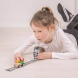 Verwandeln Sie Wohn- und Kinderzimmer oder sogar den Reisekoffer in eine Eisenbahnwelt. Das Klebeband mit Schienenmotiv ermöglicht Kindern, im Handumdrehen eine Strecke zu gestalten, auf der der beiliegende Holzzug fahren kann. Eine tolle kreative Spielidee für Zugfans, die Vorstellungskraft und Feinmotorik fördert.