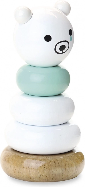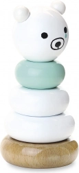 Diese elegante Steckpyramide mit Bär in Weiß-Mint und natürlicher Holzoptik ist ein ideales erstes Lernspielzeug. Kinder üben das richtige Anordnen der Ringe, das Unterscheiden von Größen und den Bewegungsrhythmus, während sanfte Farben und der niedliche Ausdruck des Bären Neugier und ruhiges Spiel fördern.