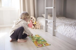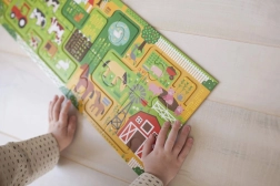 Entdecke die Welt des Bauernhofs mit einem kreativen Set, das Puzzeln und ein unterhaltsames Suchspiel verbindet. Nach dem Zusammensetzen des langen Puzzles folgen Kinder mit dem Finger den Wegen, trainieren die Hand-Auge-Koordination und suchen dabei auf dem Bild nach 20 Gegenständen. Eine ideale Aktivität für gemeinsame Momente mit Kindern oder für selbstständiges Spiel.