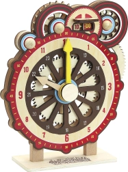 Im Lieferumfang enthalten ist ein Set mit Muster- und Übungskarten, mit denen Kinder ihr Wissen festigen und selbstständig Zeiten einstellen und ablesen können. Die Uhr lässt sich einfach auf den Tisch stellen oder im Kinderzimmer bzw. Klassenraum an die Wand hängen. Die robuste Ausführung aus hochwertigem Holz und eine umweltfreundliche Produktion gewährleisten Langlebigkeit und sicheres Benutzen.
