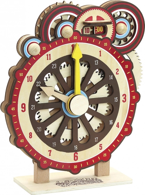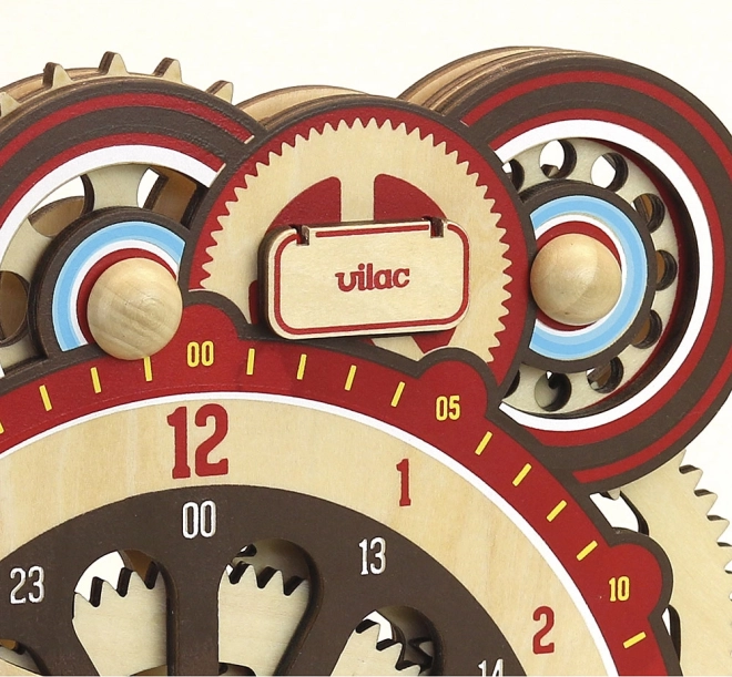 Die VILAC Holz-Didaktikuhr führt Kinder auf unterhaltsame Weise in die Welt der Zeit ein. Das analoge Ziffernblatt wird durch eine Scheibenanzeige ergänzt, die eine digitale Darstellung nachahmt und die Orientierung erleichtert. Beide Zeiger sowie die Scheibenanzeige sind durch präzise Übersetzungen miteinander gekoppelt, sodass die Mechanik echten Uhren treu entspricht – das hilft, das Verhältnis zwischen Minuten und Stunden besser zu verstehen.