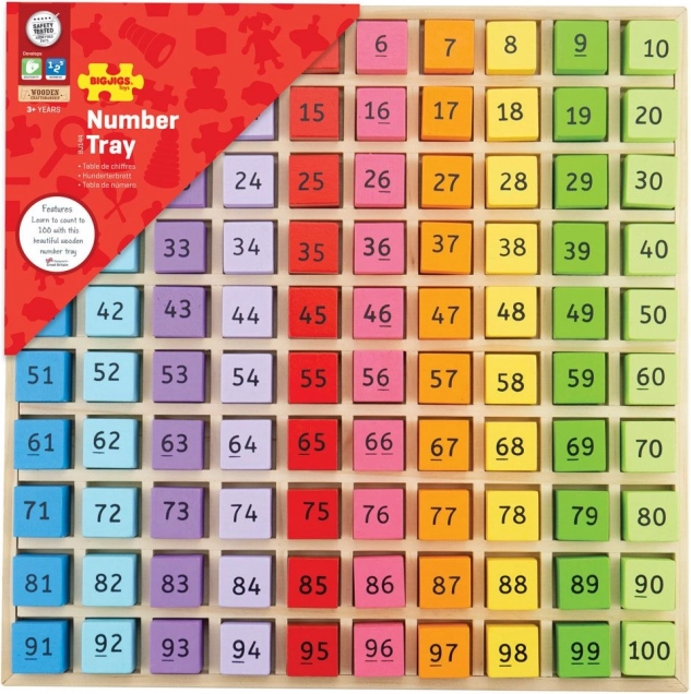 Bigjigs Toys bringt Spaß und Bildung durch ihre Holz-Zahlen im Ständer. Dieses Spielzeug ist für Kinder ab 3 Jahren geeignet und ideal zur Förderung von Zählfähigkeiten. Enthält 100 Teile, Zahlen von 1 bis 100, die farblich unterschiedlich sind, was das Erkennen von Zahlen und Farben unterstützt.