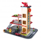 Dank der widerstandsfähigen Holzkonstruktion ist das Spielzeug langlebig und beständig. Die Maße der Garage sind 35x48x38 cm und geeignet für Kinder ab 3 Jahren.