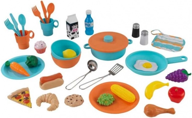 Im Lieferumfang sind 38 Teile an Geschirr, Lebensmitteln und Küchenutensilien enthalten. Kinder können sofort servieren, rühren, schneiden und neue Rezepte entdecken.
