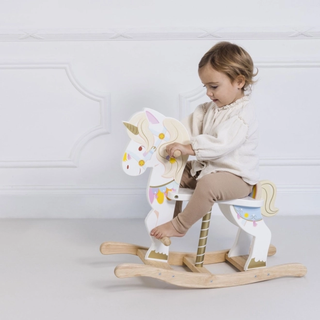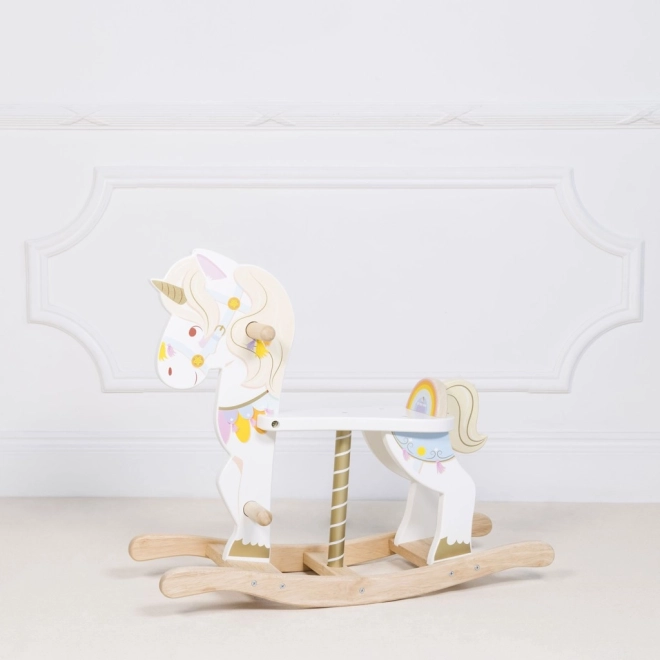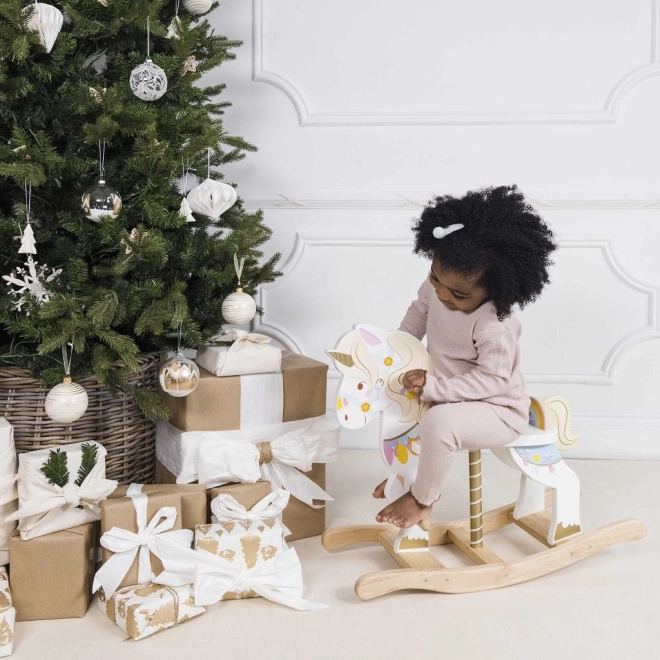 Das Schaukeleinhorn LE TOY VAN aus der Petilou-Kollektion ist ein klassisches Spielzeug in modernem Gewand. Dank der stabilen Holzbasis und einer durchdachten Ergonomie unterstützt es natürliches Schaukeln, fördert Koordination, Gleichgewicht und Bewegungssicherheit. Liebevolle Farbdetails, ein goldenes Horn und ein freundlicher Ausdruck regen Fantasie und Spielfreude an.