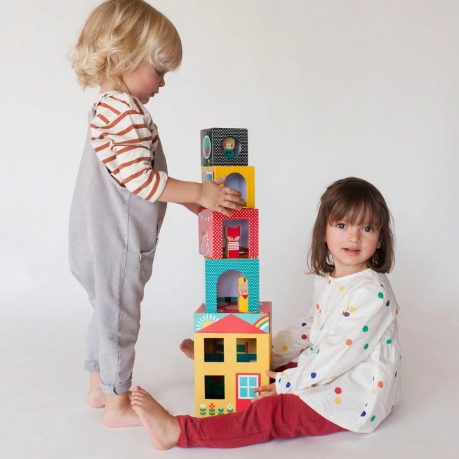 Dieses durchdachte Steck- und Stapelspiel fördert die kindliche Vorstellungskraft, die Feinmotorik und das räumliche Denken. Kinder können Etagen bauen, Türen und Fenster öffnen und mit den niedlichen Holzfreunden spielen. Wenn es Zeit für eine Pause ist, lässt sich alles einfach ineinanderschieben und im Haupthaus mit praktischem Magnetverschluss verstauen.