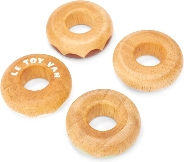 Dieses Set aus Holz-Donuts von Le Toy Van ist nicht nur ästhetisch ansprechend, sondern vor allem sicher und aus Massivholz gefertigt. Jeder Donut ist sanft abgerundet für sicheres Spielen und mit Pastelltönen sowie verschiedenen Streuselmustern verziert. Die bei der handwerklichen Nachbemalung verwendeten wasserbasierten Farben sind ungiftig und vollkommen sicher für Kinder.