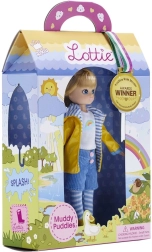 Wenn es draußen regnet, zieht die Puppe LOTTIE Muddy Puddles ihren Regenmantel an, schlüpft in die Gummistiefel und los geht’s, in die Pfützen zu springen. Diese gelenkige Puppe mit beweglichen Knien inspiriert Kinder zum kreativen Spiel im Freien und fördert ihre Vorstellungskraft auf spielerische Weise.