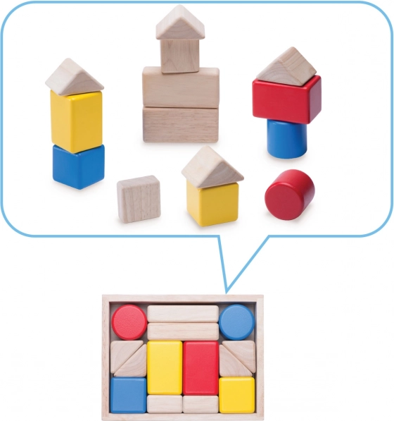 Die Holzbausteine haben angenehm abgerundete Formen und eine hochwertige Oberflächenbehandlung, sodass sie auch von kleinsten Händen gut gehalten werden können. Langlebige Materialien und hochwertige Verarbeitung sorgen für eine lange Lebensdauer und sicheres Spiel. Dank der kompakten Maße ist das Set sowohl für zu Hause als auch für unterwegs ideal.