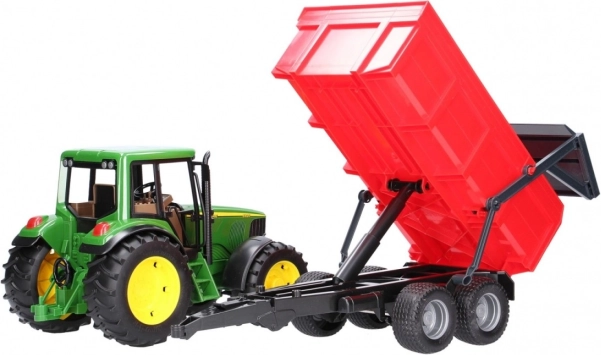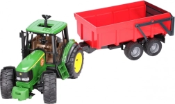 Das Set JOHN DEERE Traktor mit funktionalem Kippanhänger bietet Kindern ein realistisches Erlebnis landwirtschaftlicher Arbeiten. Der Traktor ist detailreich gestaltet, hat eine öffnende Motorhaube, eine lenkbare Vorderachse über ein verlängertes Lenkrad in der Kabine und auffällige profilierte Reifen für authentisches Aussehen und Spuren.