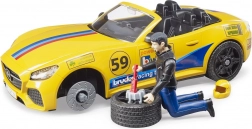 Der gelbe Sportwagen mit der Startnummer 59 und abnehmbarem Dach bringt Rennlook und Funktionen mit. Ideal für Service- und Rennszenarien.