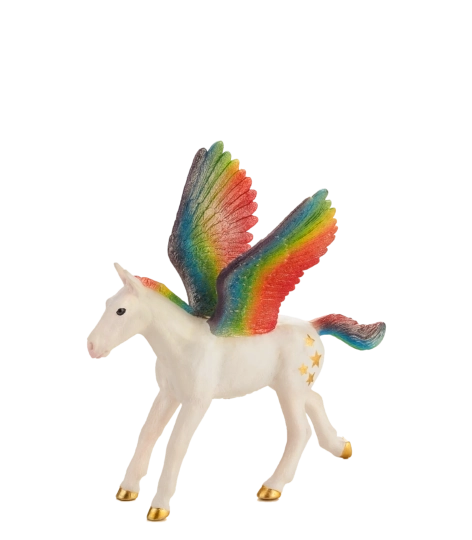 Entdecken Sie den Zauber der Märchenwelt mit dem realistisch gestalteten Regenbogen-Fohlen Pegasus von MOJO. Die Figur überzeugt durch präzise Details und wirkt dadurch sowohl im Regal als auch im Kinderspiel lebendig. Langlebiges Material und eine sichere Zusammensetzung sorgen für lange Haltbarkeit und unbeschwertes Spielen.