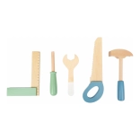 Enthalten sind 21 Teile: 5 Schrauben, 5 Muttern, 3 Nägel, 5 Werkzeuge und 3 perforierte Leisten zum Üben von Schrauben und Hämmern. Ein Schraubstock und ein unteres Regal sorgen für die sichere Aufbewahrung aller Zubehörteile. Eine tolle Wahl für Jungen und Mädchen ab 3 Jahren.