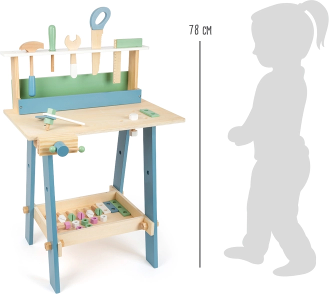 Nach dem Auspacken muss die Werkbank einfach montiert werden – eine tolle Gelegenheit, Kinder in den Prozess einzubeziehen und ihre Selbstständigkeit zu fördern. Die stabile Konstruktion aus hochwertigem Holz und die angenehmen Pastelltöne sorgen dafür, dass sie schnell zum Lieblingsstück im Kinderzimmer wird.