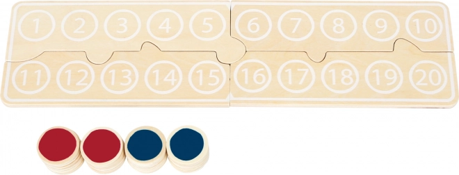 Bunte Plättchen und eine übersichtliche Tafel mit den Zahlen 1–20 ermöglichen es Kindern, Aufgaben leicht zu legen und Ergebnisse direkt zu sehen.