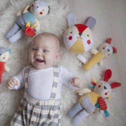 Der Hase dient als Rassel, Beißspielzeug und kuscheliges Plüschtier für Kinder, was ihn zu einem sehr vielseitigen Spielzeug macht.