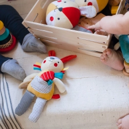 Das Spielzeug ist aus zertifizierter organischer Baumwolle und ungiftigen Farben hergestellt, die sanft zur Haut und umweltfreundlich sind.