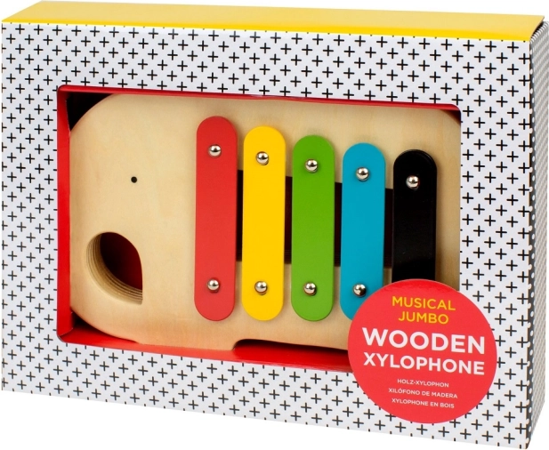 Fünf leuchtend bunte Metallplatten auf einem hölzernen Elefantenkörper laden zum Entdecken von Tönen und zum ersten Musizieren ein. Enthalten ist ein Holzschlägel mit elastischer Halterung.
