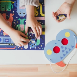 Nach dem Zusammensetzen des Bildes wartet eine Detektivsuche: Finden sie 5 Süßigkeiten, 4 Gegenstände mit Rädern, 3 Kopfbedeckungen, 2 Musikinstrumente und 1 stinkenden Gegenstand? Dank hochwertiger Materialien aus FSC-zertifiziertem Papier und Druck mit ungiftigen Farben ist das Spiel sicher und umweltschonend.