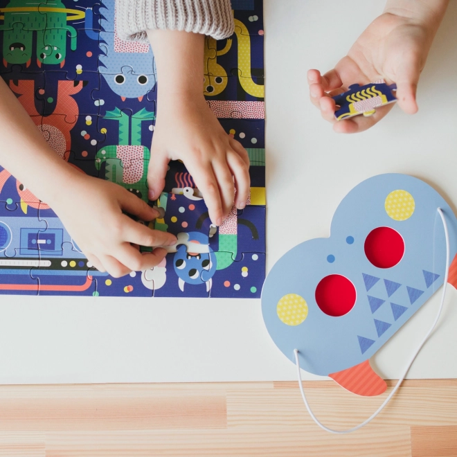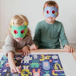 Entdecken Sie die verspielte Welt des Monster-Festivals: Zuerst tauchen Kinder in das Zusammensetzen des farbenfrohen Puzzles ein, anschließend setzen sie spezielle 3D-Masken auf, um versteckte Objekte zu enthüllen. Das Spiel verbindet clever Spaß und Lernen und fördert Konzentration, Geduld und visuelle Wahrnehmung.