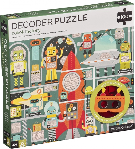 Petit Collage Puzzle Roboter mit Dekodiermaske, 100 Teile
