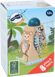 Dieser hochwertige Steckturm mit Jungle-Motiv bietet fünf farbige Elemente und einen sicheren Mittelstab, mit dem Kinder Formen und Farben leicht entdecken und stapeln können. Tierillustrationen begeistern auf den ersten Blick und fördern Konzentration sowie spielerisches Lernen.