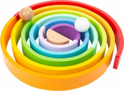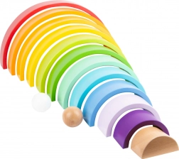 Die 14 bunten Bögen lassen sich zu Regenbögen, Brücken, Tunneln und Türmen stapeln. Kinder trainieren Gleichgewicht und Fantasie mit jeder neuen Kombination.