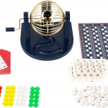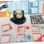 Losstrommel mit Kurbel, 75 nummerierte Kugeln, Bingo-Karten, transparente Marker