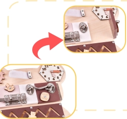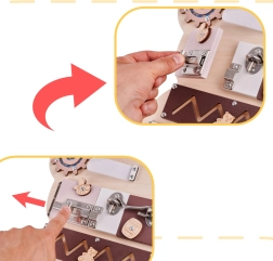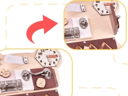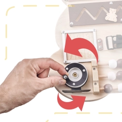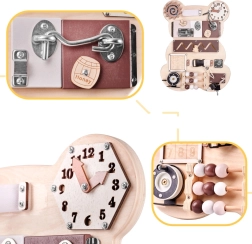- Enthält Elemente wie Kugelscharen und Schlösser zum Öffnen, die die motorischen Fähigkeiten schulen.