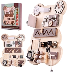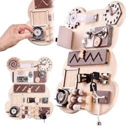 Entdecken Sie die Freude und Entwicklung, die Ihr Kind mit der sensorischen Spieltafel Bär Braun erlebt. Diese innovative Tafel fördert sowohl Unterhaltung als auch Lernfähigkeit, inspiriert von Maria Montessoris pädagogischen Prinzipien.