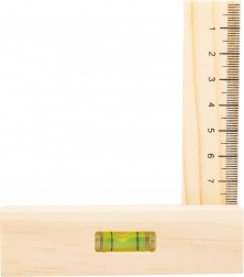 Enthält Winkelmesser mit Wasserwaage, Schraubenschlüssel, Schraubendreher, Hammer, Zange und Bohrmaschine mit 3 Aufsätzen.