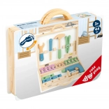 Der Holzkoffer mit Werkzeug für Kinder Nordic bietet unzählige Möglichkeiten zur Entwicklung von Geschicklichkeit und Kreativität. Kinder können dank der bunten Teile und der robusten Schrauben und Muttern verschiedene Konstruktionen bauen. Der Koffer ist stabil und robust, mit Gummibändern zur sicheren Aufbewahrung der Werkzeuge ausgestattet.
