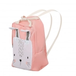 Niedlicher Kinder-Rucksack mit Hasenmotiv in Rosa, ideal für Vorschulkinder. Er bietet ein geräumiges Hauptfach mit Reißverschluss, verstellbare Schulterriemen und weiches Baumwollmaterial für maximalen Tragekomfort.
