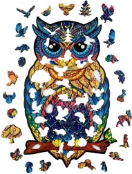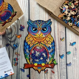 Holz-Puzzle Bezaubernde Eule bietet durch das Aquarellmotiv und speziell geformte Teile ein einzigartiges Spielerlebnis. Jeder Moment des Puzzelns wird durch Details bereichert, die Schönheit und Besonderheit verleihen.