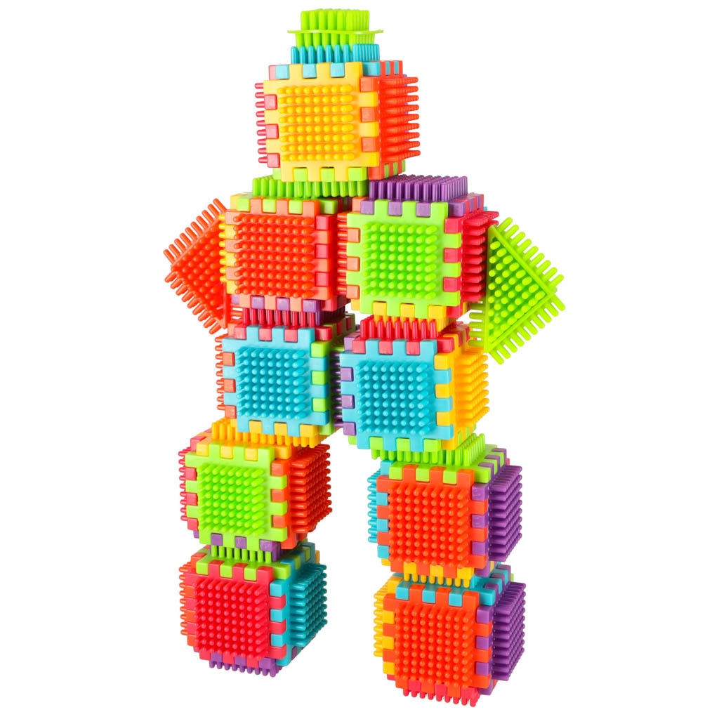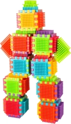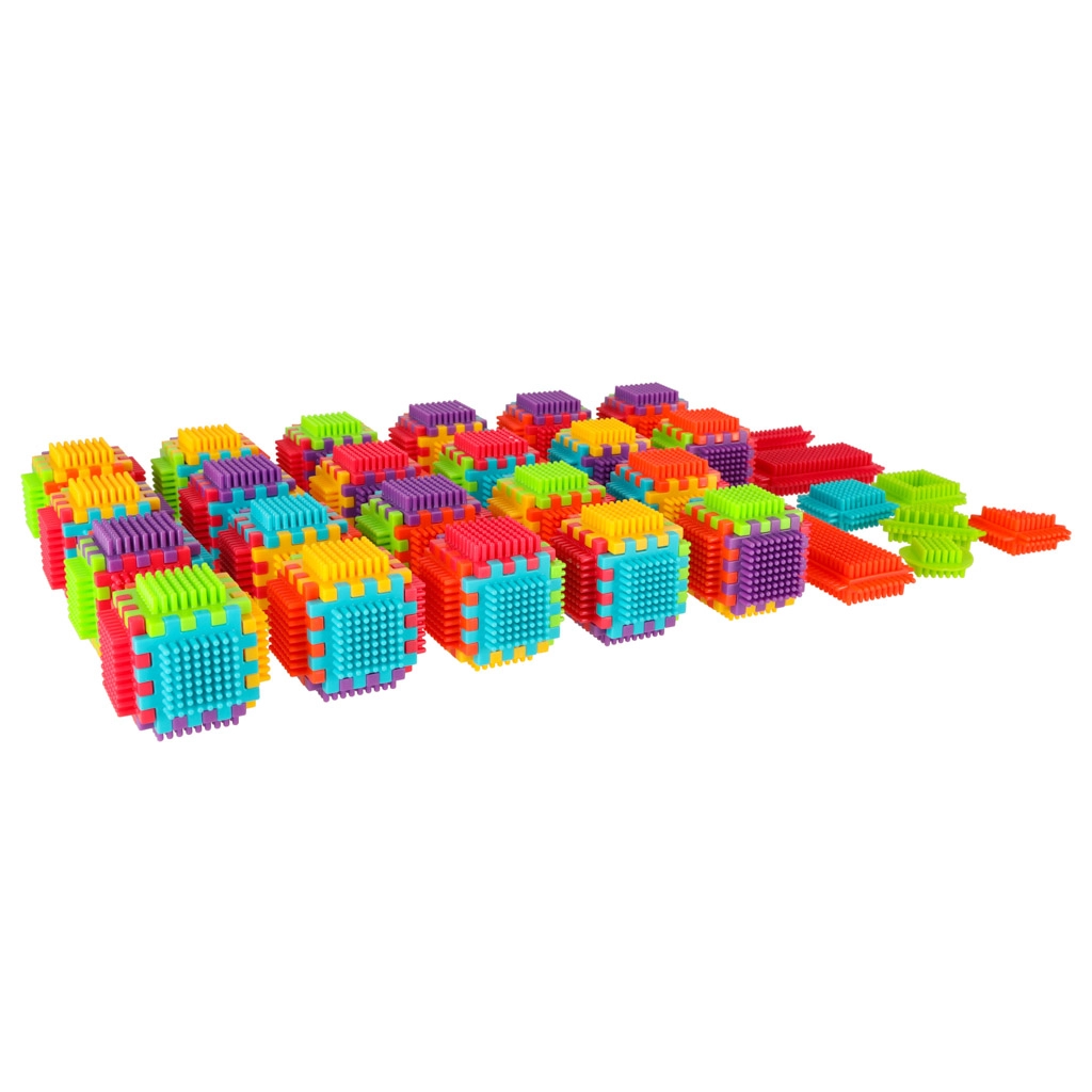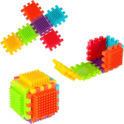 Die Blöcke bestehen aus hochwertigem Kunststoff, sind sehr leicht, flexibel und zugleich äußerst robust. Sie unterstützen beim Erlernen neuer Formen und Farben und fördern die manuellen Fähigkeiten. Die Blöcke sind so konzipiert, dass sie die sich entwickelnden Sinne des Kindes stimulieren: das Sehen durch kräftige Farben und den Tastsinn durch die originelle Form und Verbindungsart. Blöcke, die fantastische Möglichkeiten für kreatives Spielen bieten! Neben der traditionellen Kombinationsmöglichkeit wie bei gewöhnlichen Bausteinen können diese Blöcke auch vollflächig an den Seiten verbunden werden, was eine zusätzliche Gestaltungsoption eröffnet. Sie können zum Bau von Gebäuden, Robotern und anderen Konstruktionen verwendet werden!