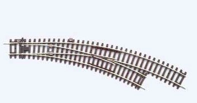 Piko gebogene Weiche mit detailgetreuer Nachbildung von Holzschwellen und authentischen Farben. Diese Weiche kombiniert ein Paar von 30°-Bögen R3 und R2 für die rechte Ausrichtung und kann manuell oder per Fernbedienung gesteuert werden.