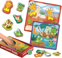Entdecken Sie ein spielerisches Lernset, bei dem Kinder die Jungtiere ihrer Mama und ihres Papas zuordnen, die Tiere und ihre natürliche Umgebung kennenlernen und dabei Geduld, Aufmerksamkeit und Feinmotorik trainieren. Das Set ist für die Kleinsten konzipiert – die einfachen Konturteile liegen gut in der Hand und lassen sich leicht einsetzen.