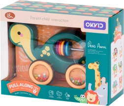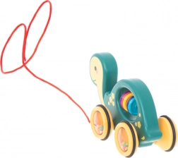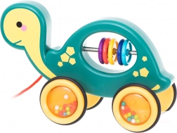 Dieses bunte Ziehtier in Schildkrötenform bietet Kindern endlosen Spaß mit bunten Perlen in den Rädern, die rasseln und zum Bewegen einladen.