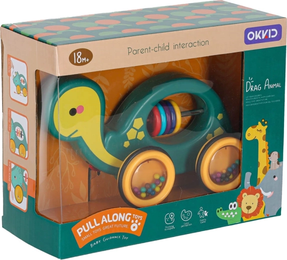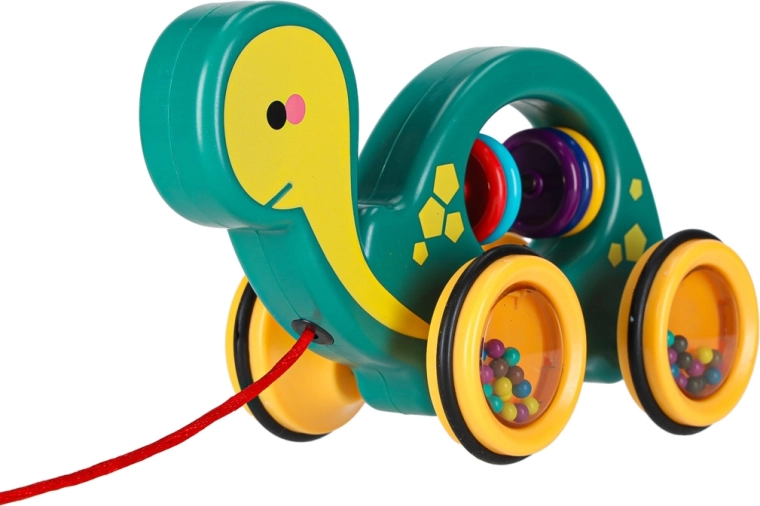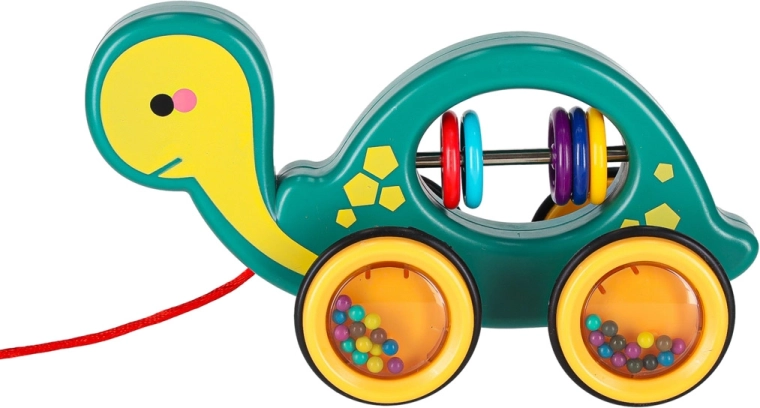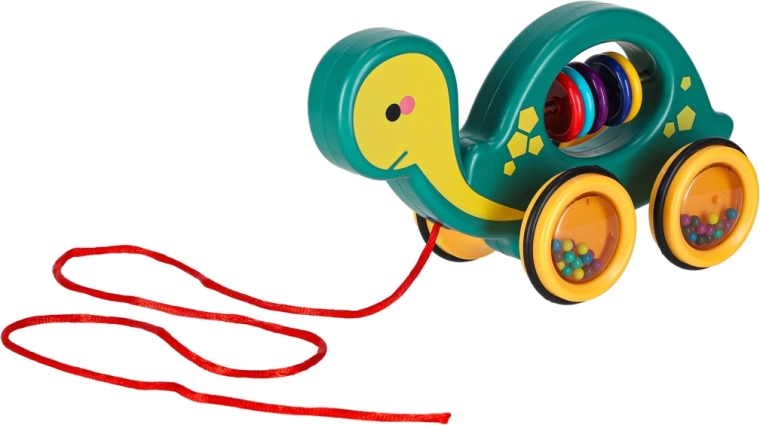 Diese fröhliche Zieh-Schildkröte ist ein perfekter Begleiter für zu Hause und unterwegs. Dank der Schnur kann das Kind sie leicht führen, während die transparenten Räder mit bunten Kügelchen angenehm rasseln und zur Bewegung motivieren. Das Spielzeug unterstützt die Entwicklung der Grob- und Feinmotorik, die Hand-Auge-Koordination sowie das Verständnis von Ursache und Wirkung.